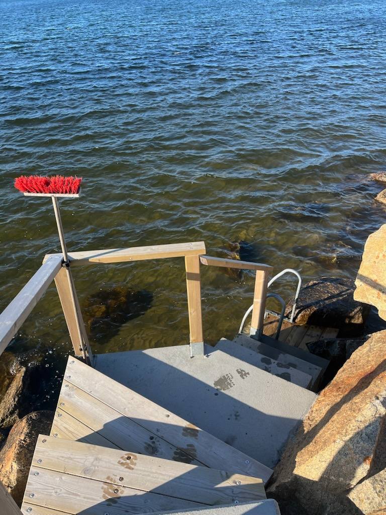 Badtrappan på piren är klar för användning, nu väntar vi bara på något varmare vattentemperatur.